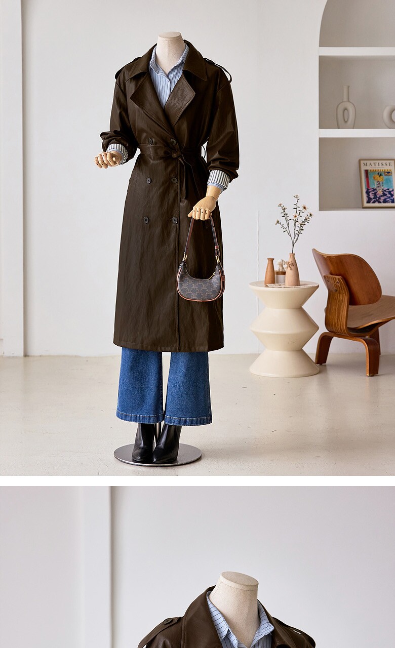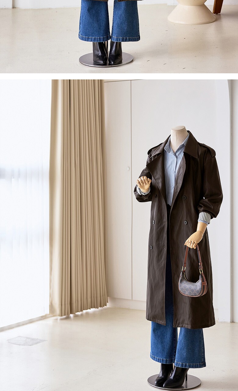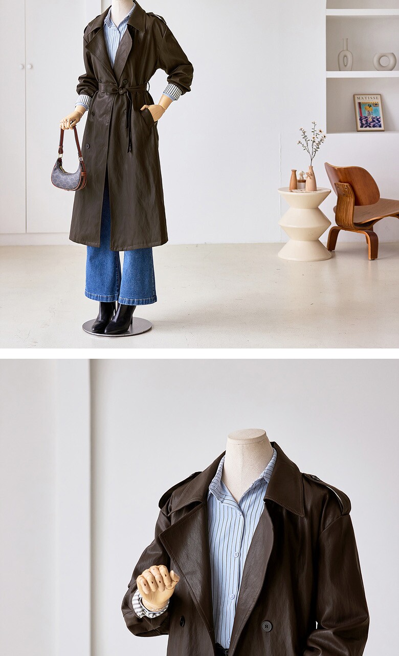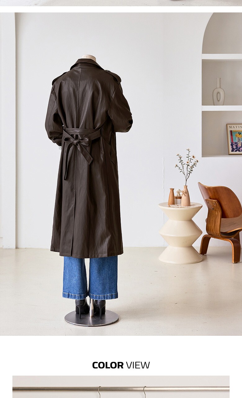 레자 소매배색 롱 트렌치 코트_T2510CT607C