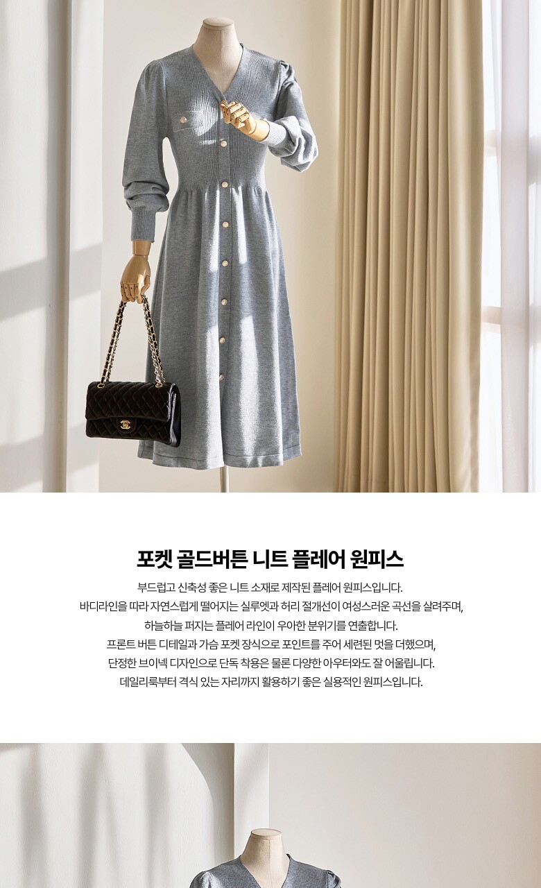 포켓 골드버튼 니트 플레어 원피스_T2510OP081C
