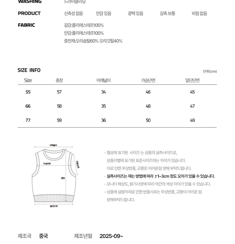 • 처음 배송된 상품상태와 다를 경우(세탁/착용 후 외출하신 경우) 반품이 불가합니다.
