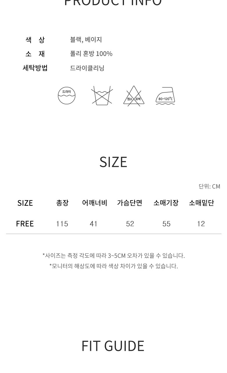 1. 제품 소재 (섬유의 조성 또는 혼용률을 백분율로 표시, 기능성인 경우 성적서 또는 허가서) | 상세페이지 참조 |