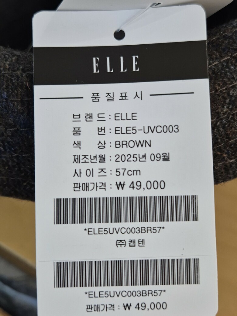 [캡텐]엘르 체크모직 중절모(ELE5UVC003)