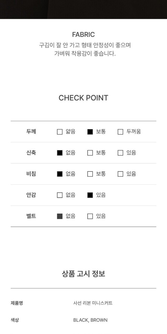 1. 제품 소재 (섬유의 조성 또는 혼용률을 백분율로 표시, 기능성인 경우 성적서 또는 허가서) | 상품상세참조 |