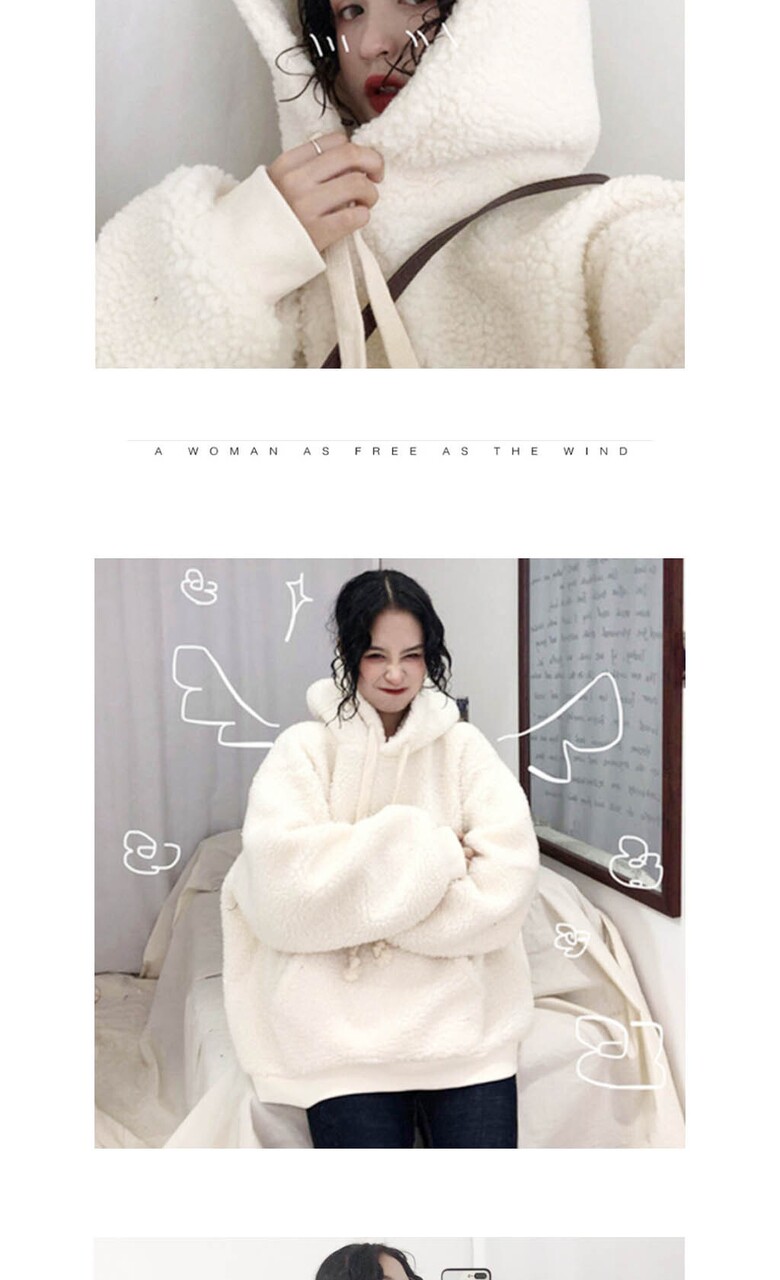 여성 겨울 귀여운 뽀글이 양털 후드티 올기모 따뜻 긴팔 베이직 데일리 상의