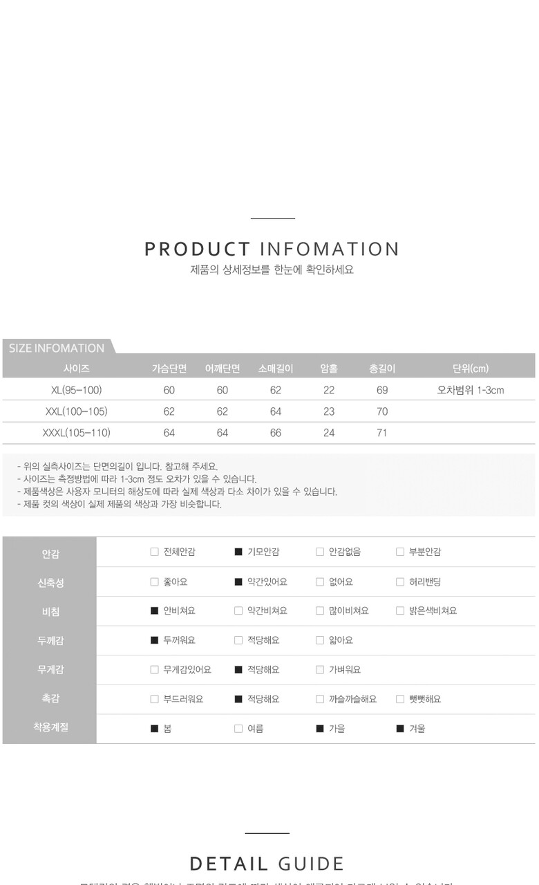 1. 제품 소재 (섬유의 조성 또는 혼용률을 백분율로 표시, 기능성인 경우 성적서 또는 허가서) | 상세설명참고 |