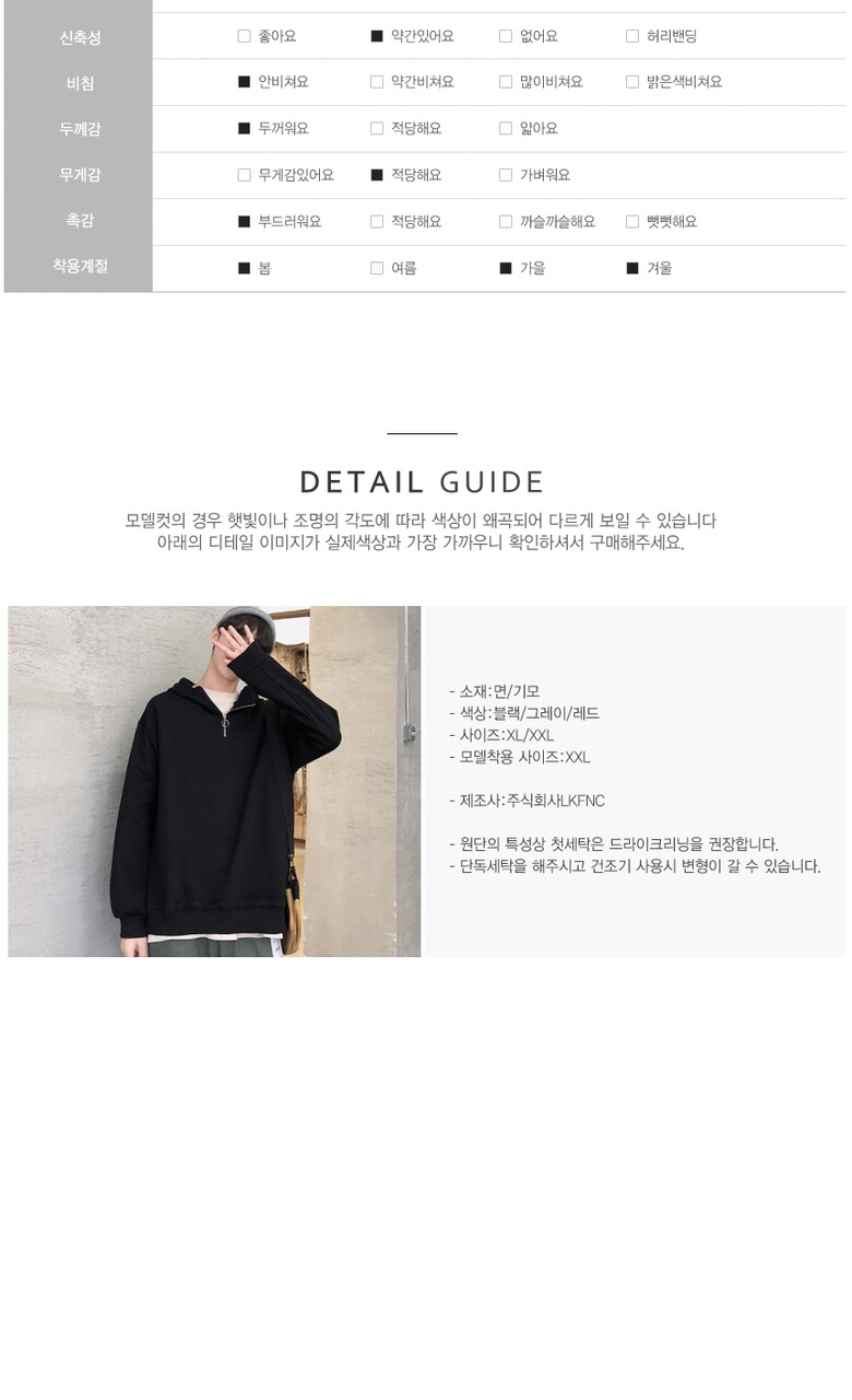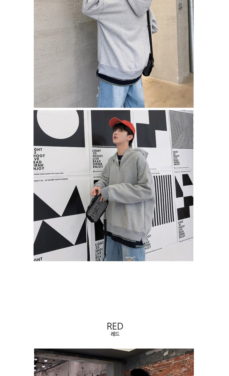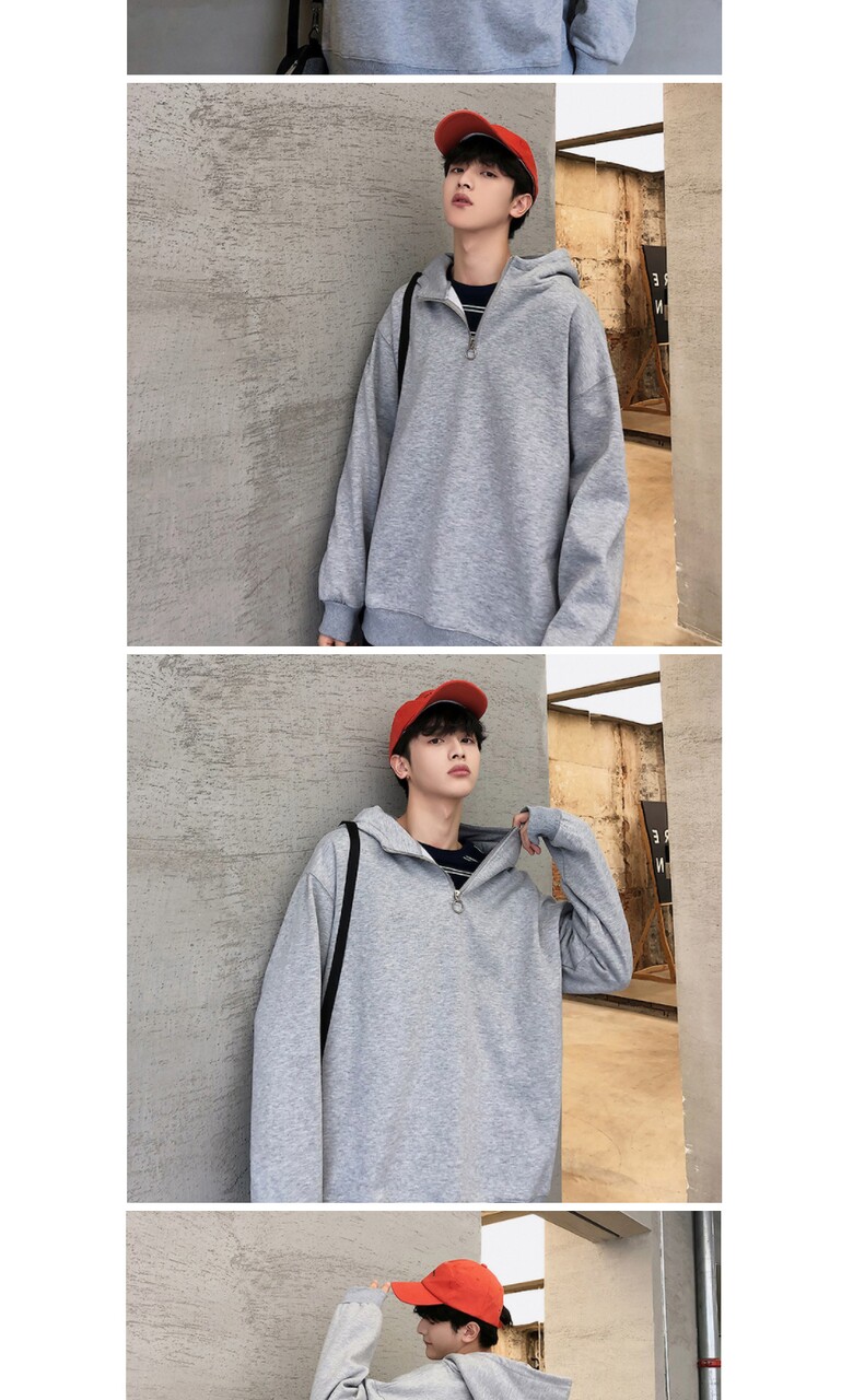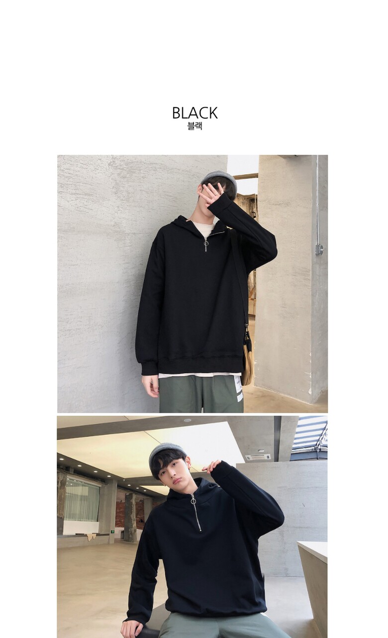 남성 후드티 반집업 긴팔 티셔츠 가을 겨울 기모 맨투맨 셔츠 남녀공용 커플티