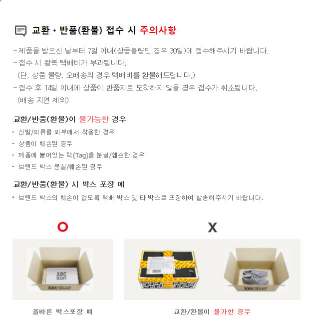 | 마리오몰 교환 및 반품 안내 |