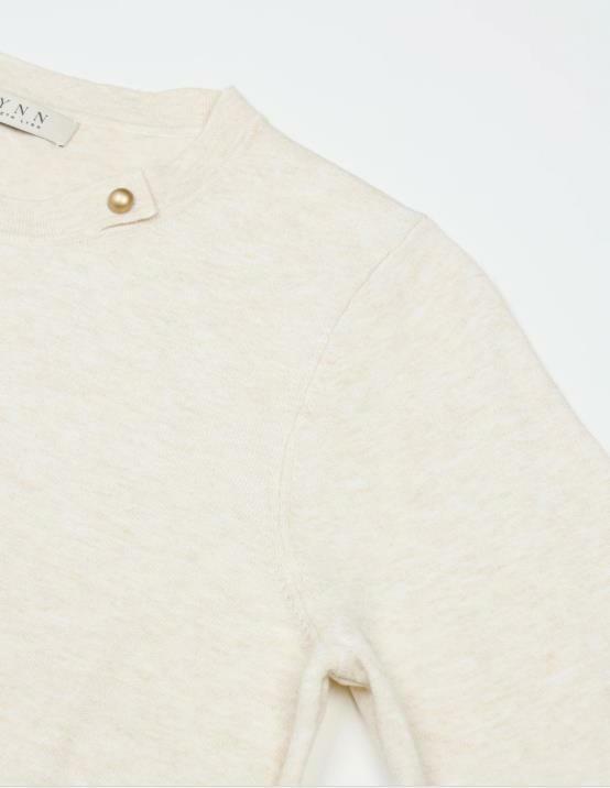 넥라인에 있는 골드 버튼이 베이직한 디자인에 포인트가 되어 줍니다.