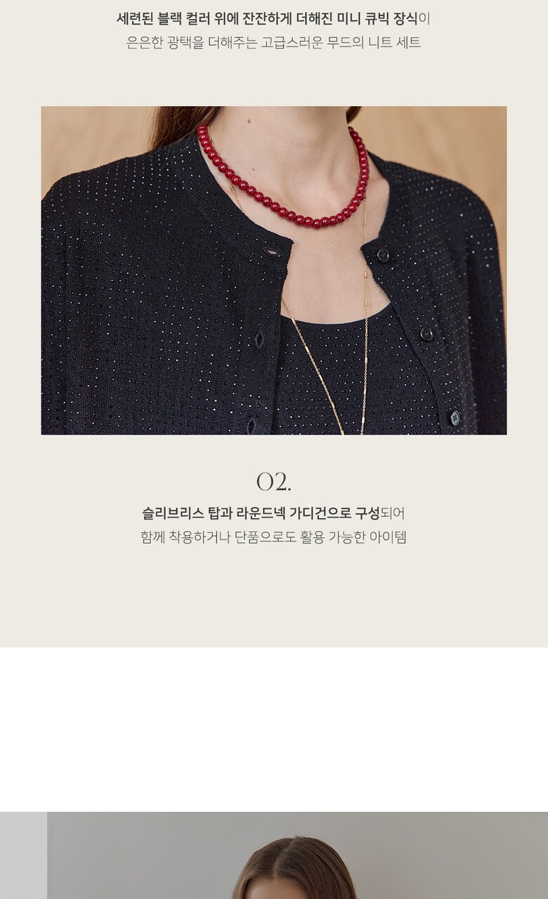 큐빅 슬리브리스 니트 탑&가디건 세트