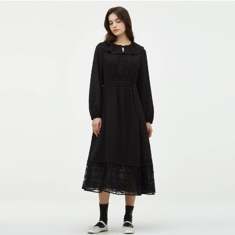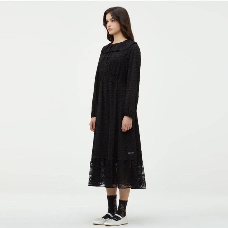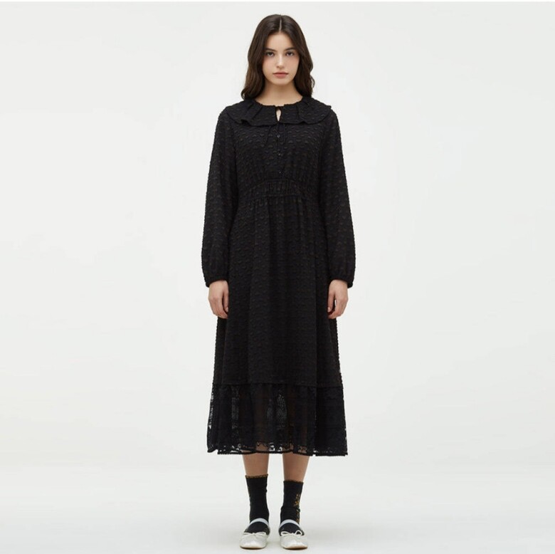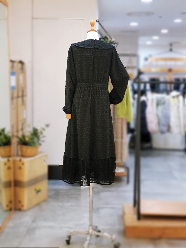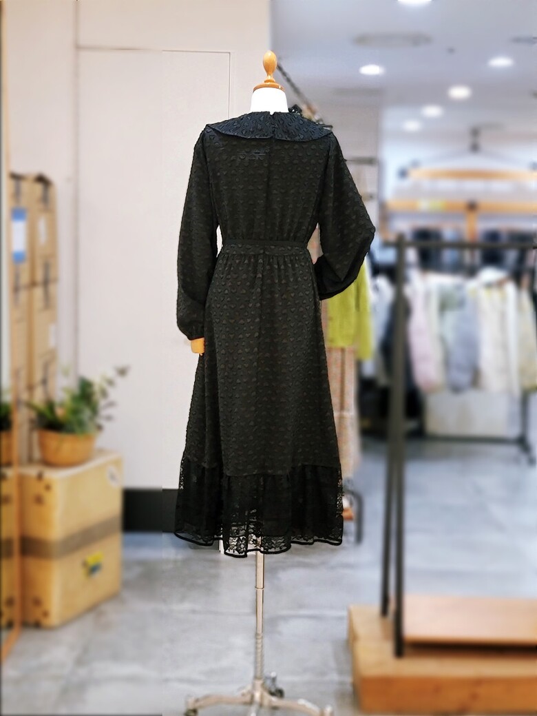 빅 카라 디테일이 포인트인 원피스입니다.