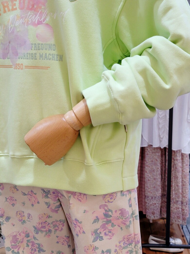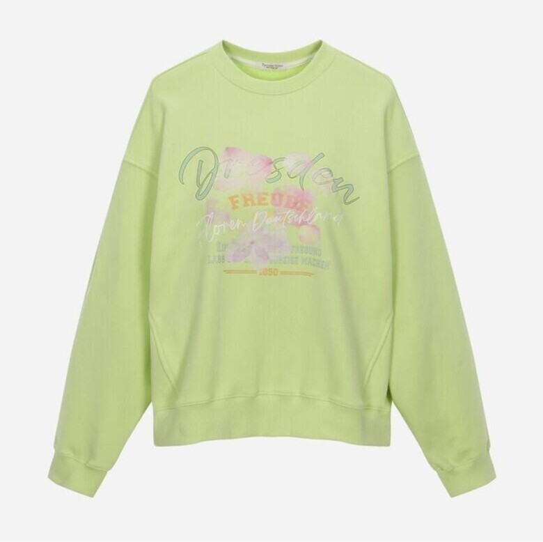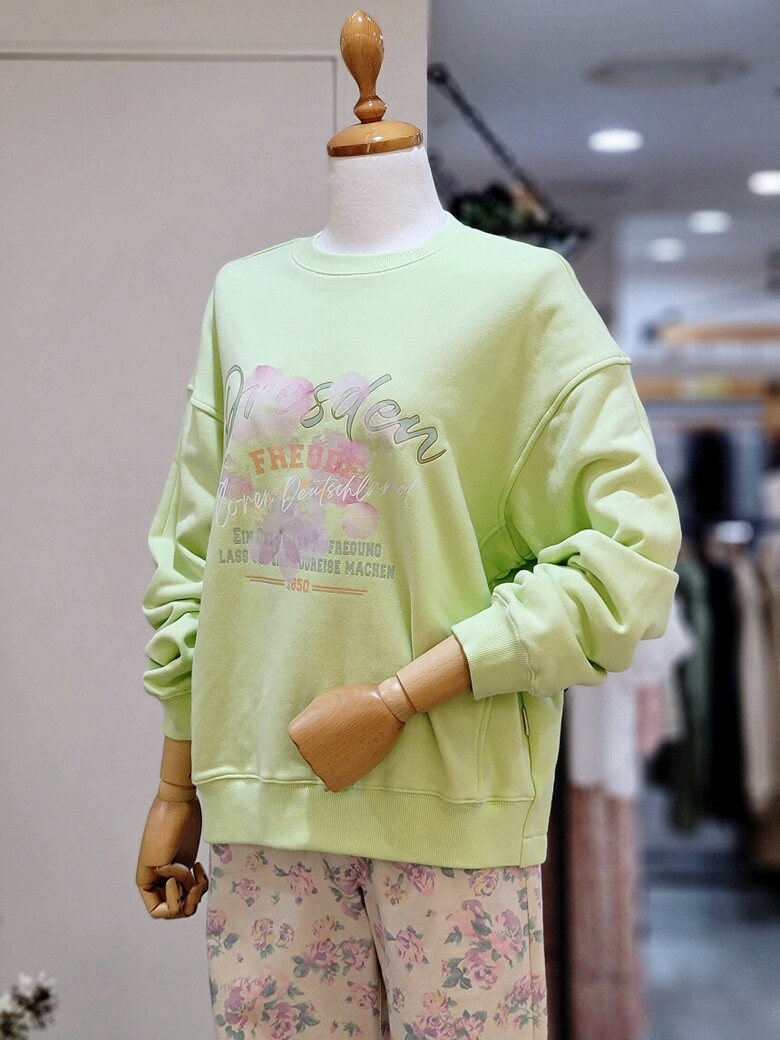 전면에 컬러풀한 플라워 레터링 아트웍으로
