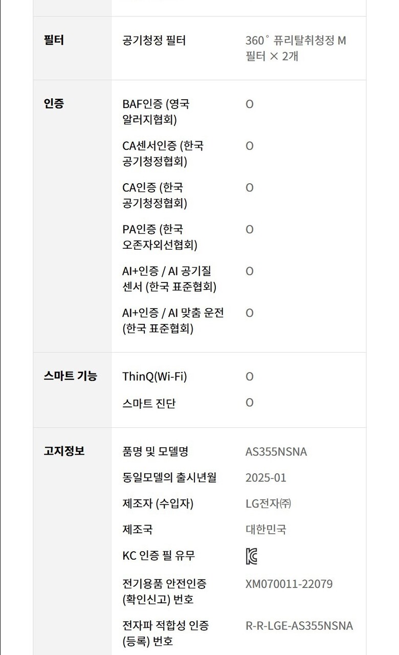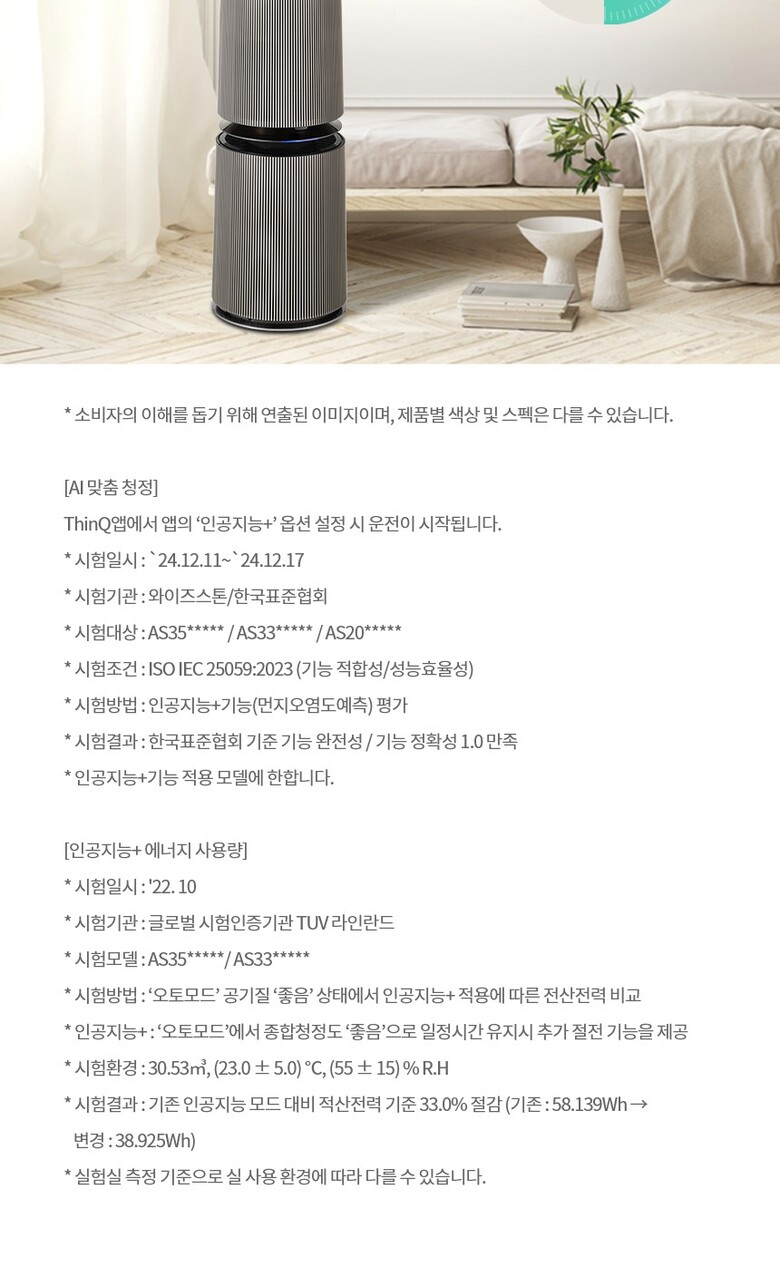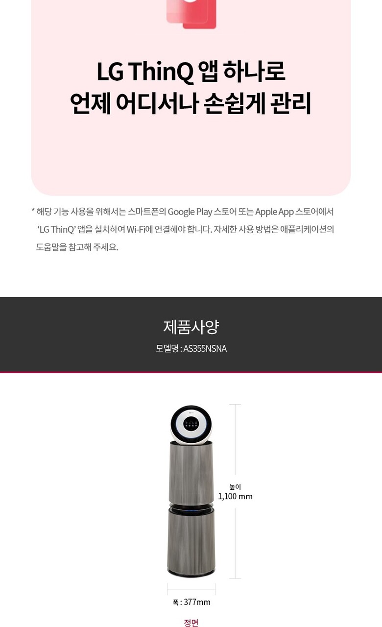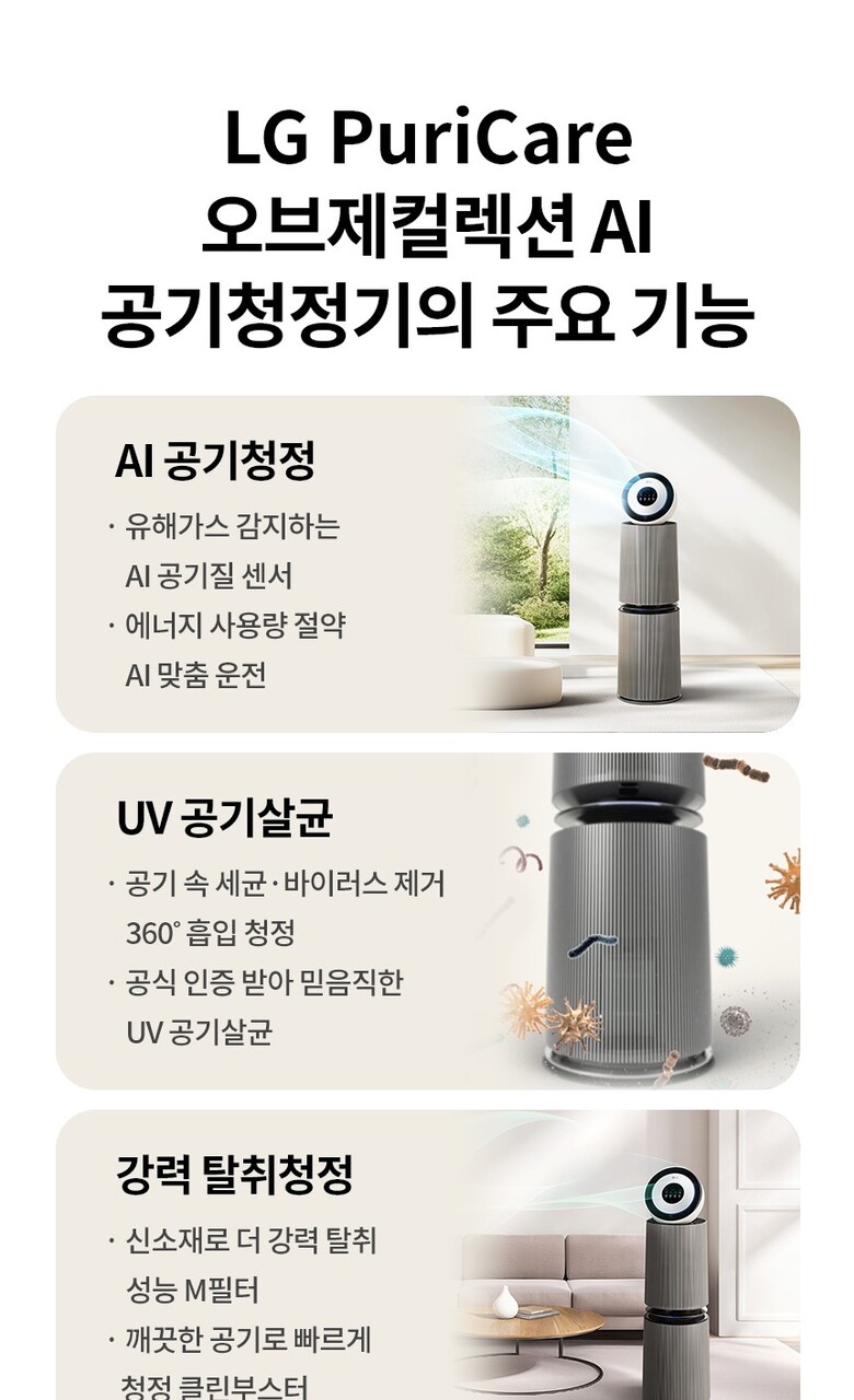 LG 퓨리케어 오브제 AI 360 공기청정기 카밍베이지 AS355NSNA