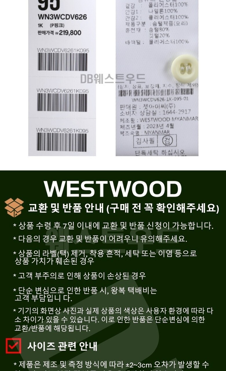 세탁방법 및 취급시 주의사항 : 케어라벨참조