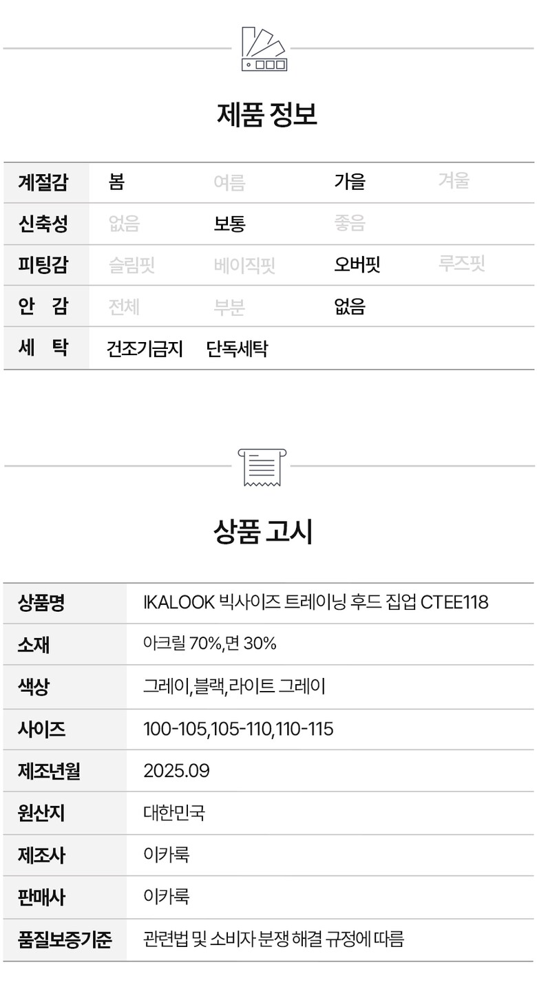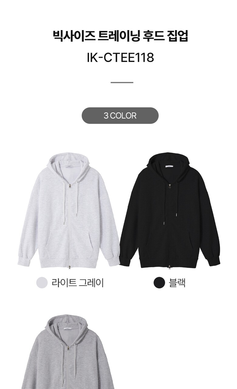 IKALOOK 빅사이즈 트레이닝 후드 집업 CTEE118