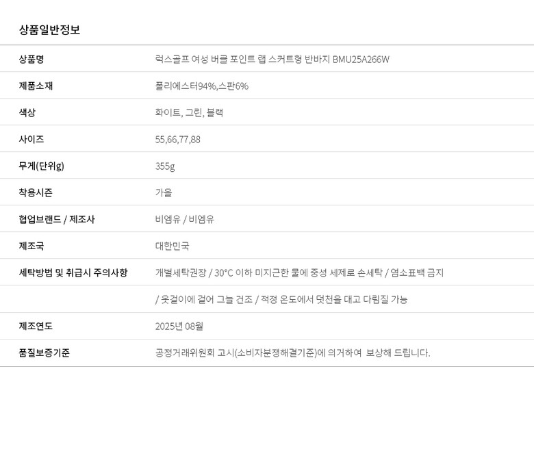 보스케 여성 가을 골프웨어 골프 버클 랩 스커트형 반바지 LB25040
