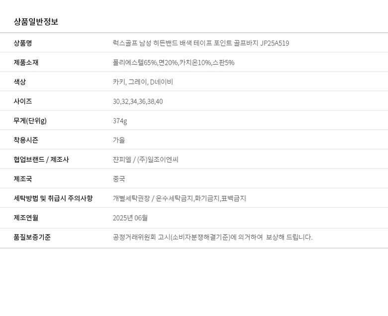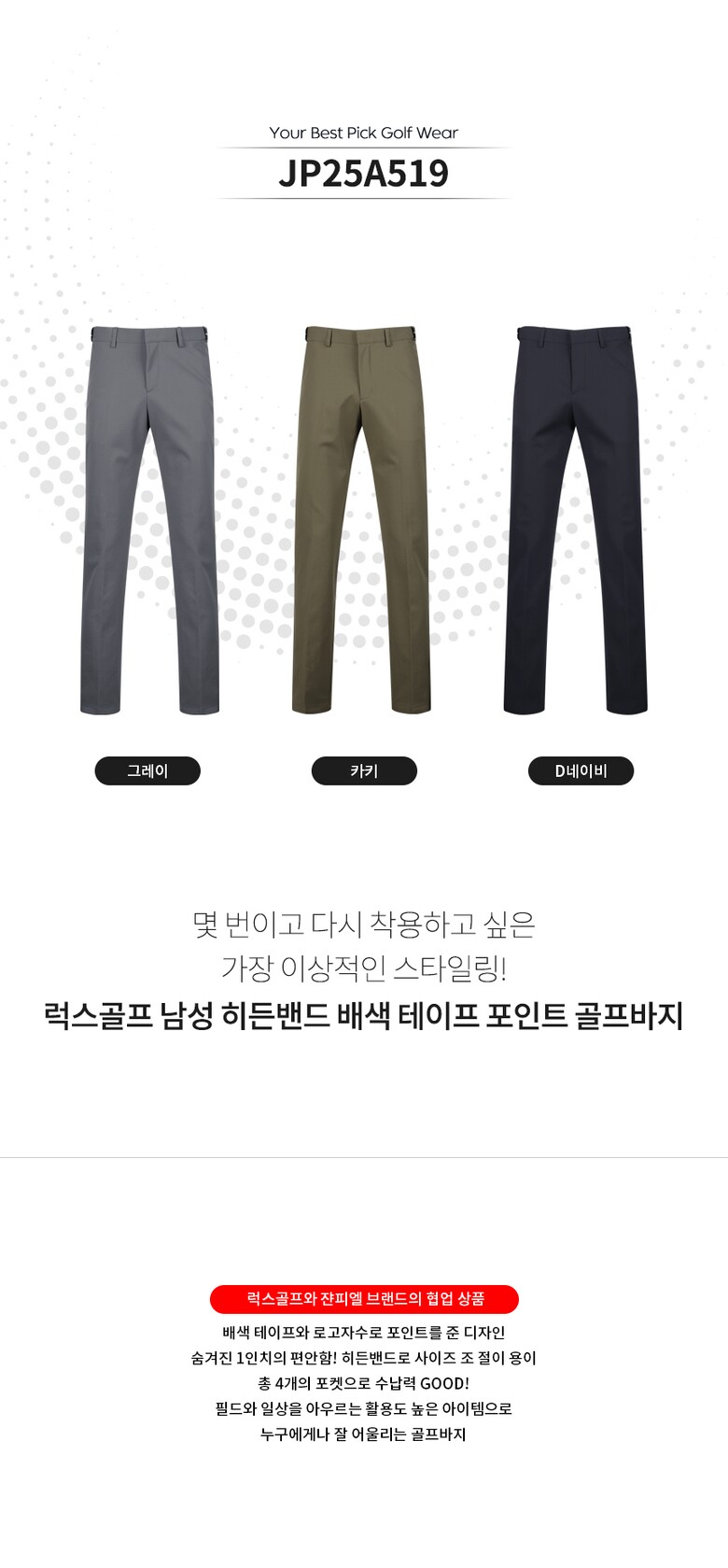 보스케 남성 가을 골프웨어 히든밴드 배색 골프바지 LB25048