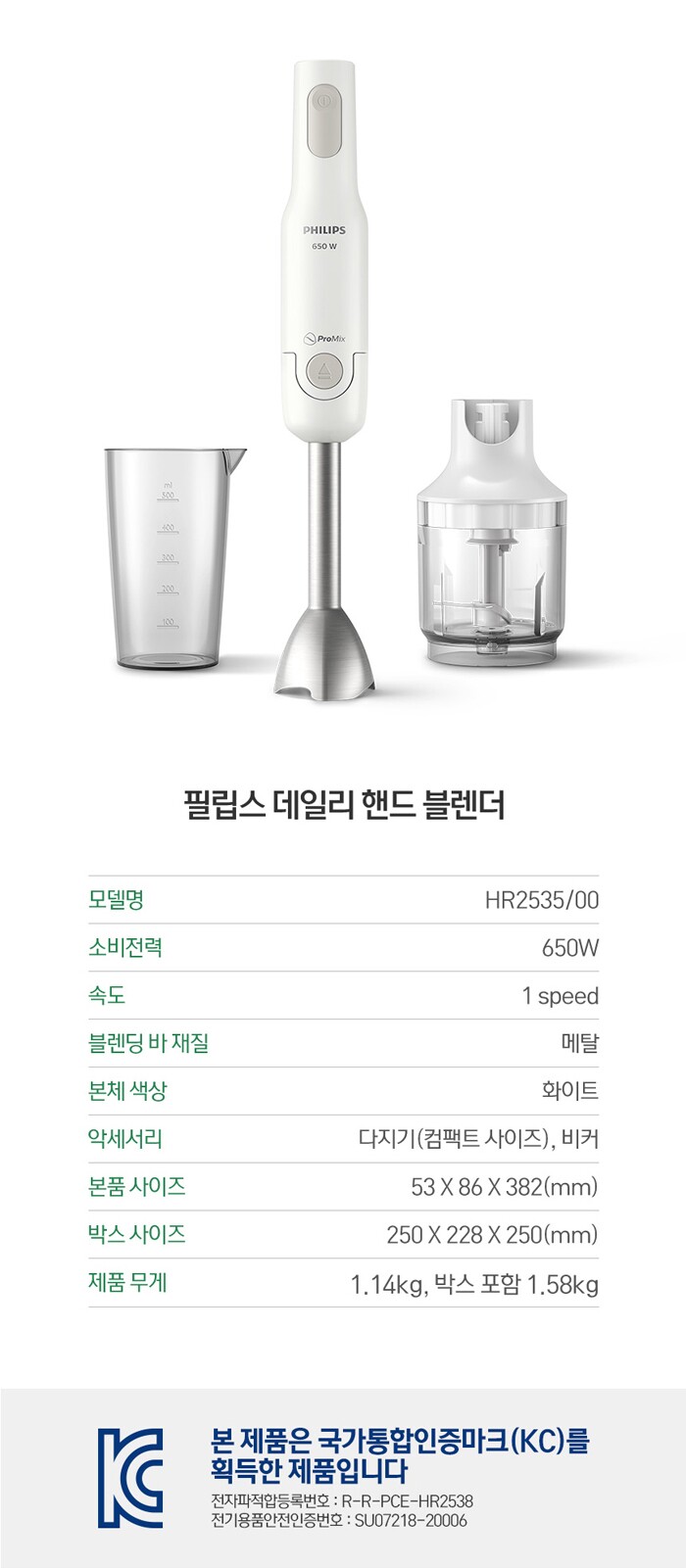 필립스 데일리 메탈 핸드 블렌더 다지기 비커 구성 HR2535/00