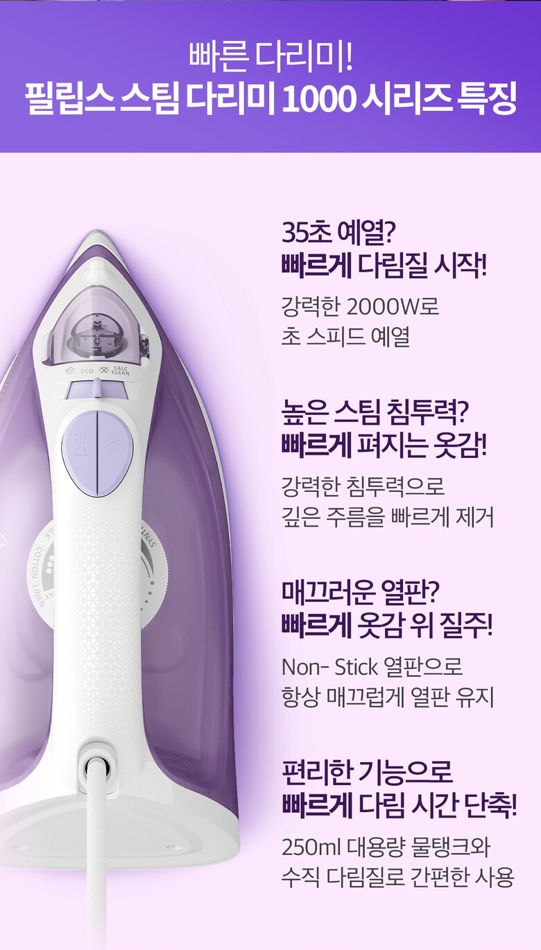 필립스 여행용 스팀 다리미 1000시리즈 DST1040/30