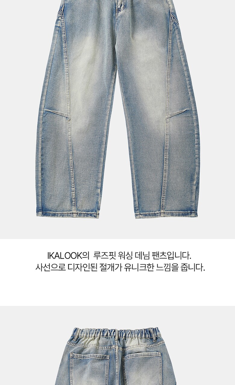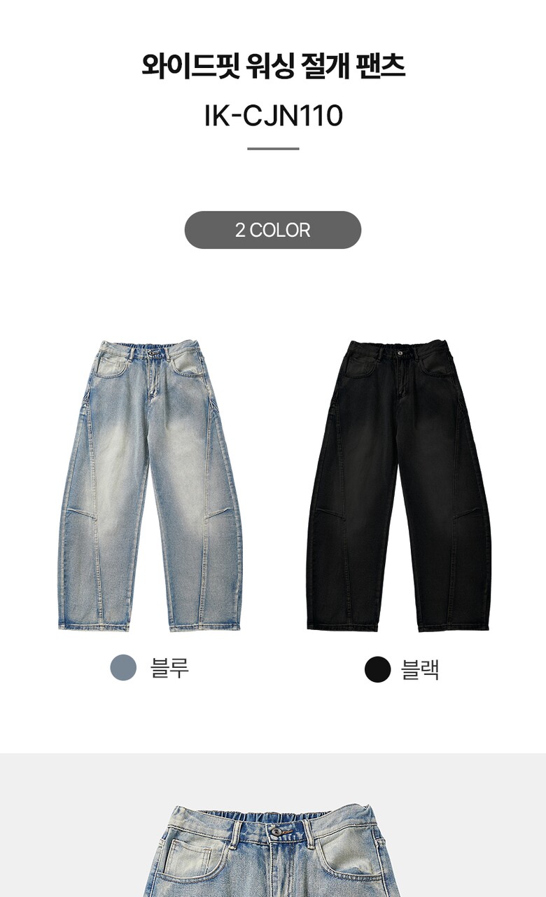 IKALOOK 와이드핏 워싱 절개 데님 팬츠 CJN110