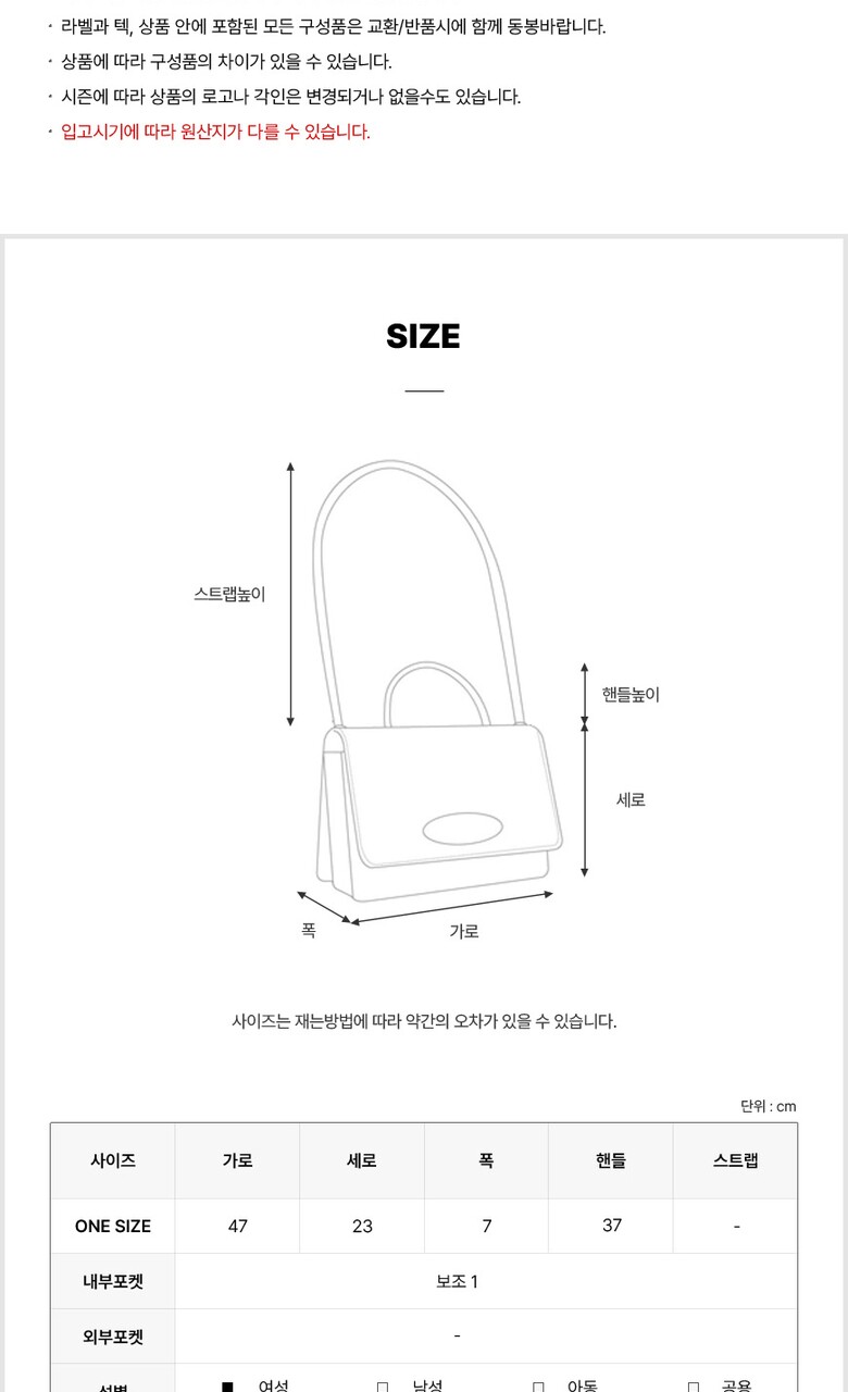 • 처음 배송된 상품상태와 다를 경우(세탁/착용 후 외출하신 경우) 반품이 불가합니다.