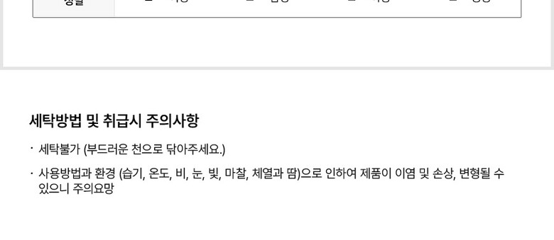 7. 취급시 주의사항 열이나 직사광선, 습기에 주의하고, 부드러운 소재를 사용하여 닦아주시기 바랍니다.