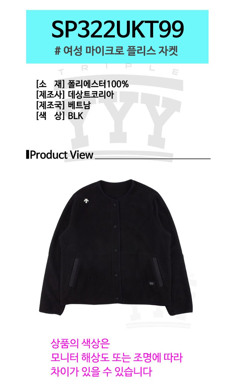 데상트 여성 마이크로 플리스 자켓 SP322UKT99 BLK