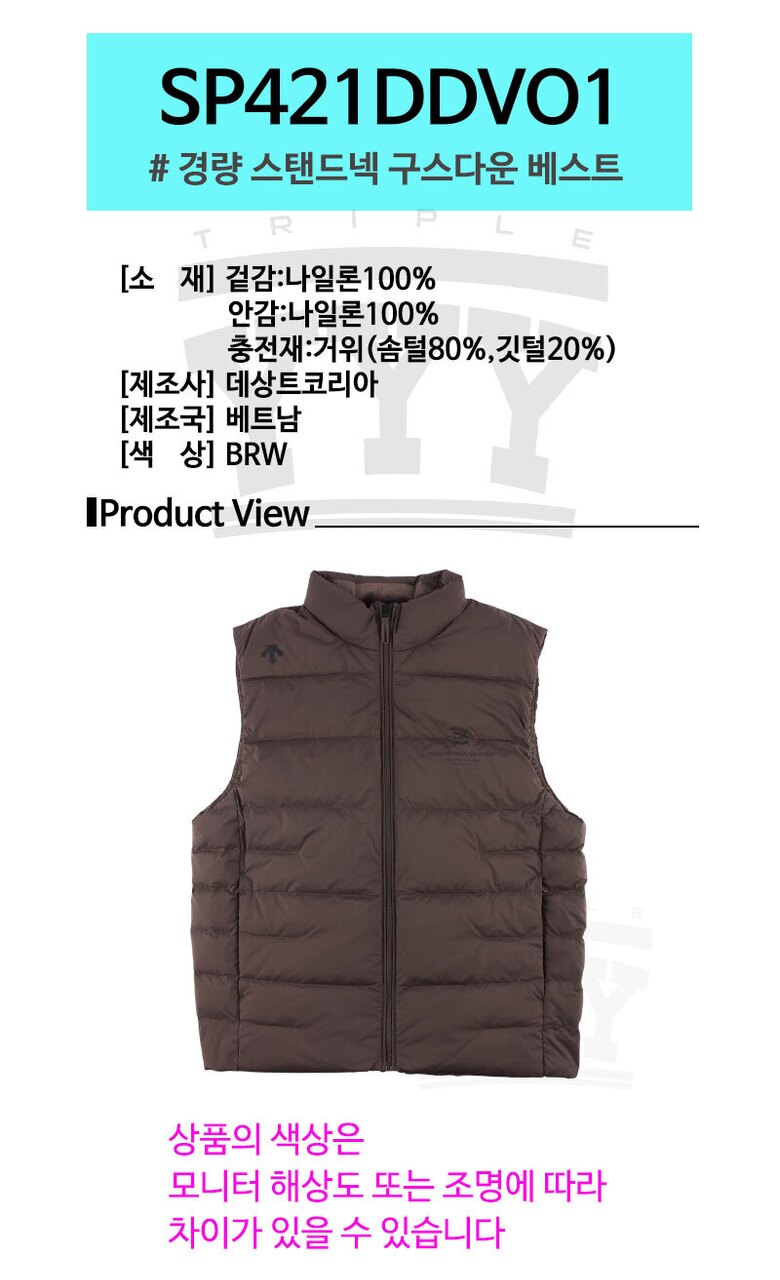 #데상트 #경량 #남자 #남성 #스탠드넥 #구스 #다운 #베스트 #조끼 #거위털 #거위 #SP421DDVO1 #데상트 #DESCENTE