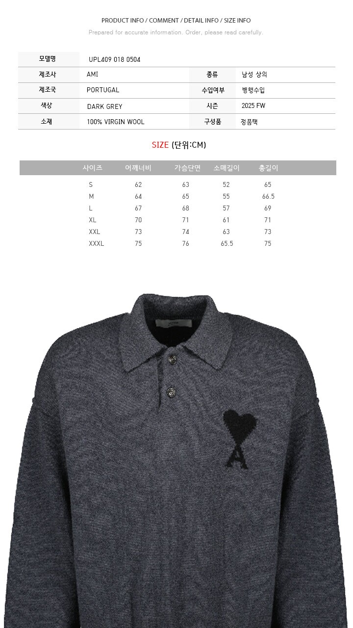 아미 25FW 하트 로고 버튼업 카라 니트 다크그레이 UPL409 018 0504