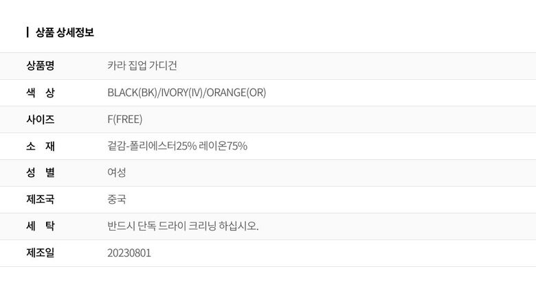 | 2. 색상 | 색상:BLACK(BK)/IVORY(IV)/ORANGE(OR) |