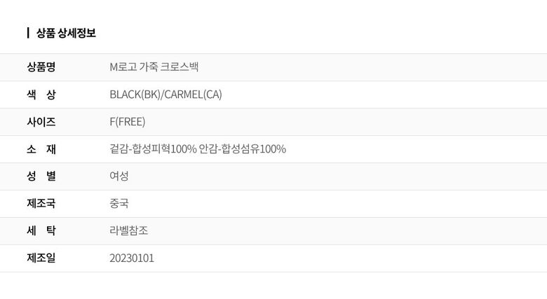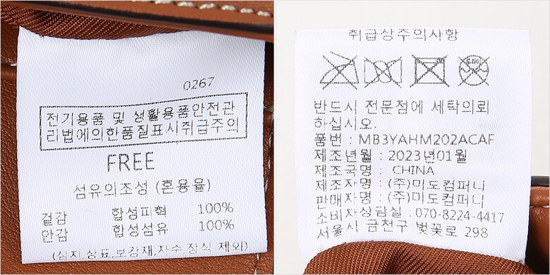 2. 소재 | 겉감-합성피혁100% 안감-합성섬유100% |