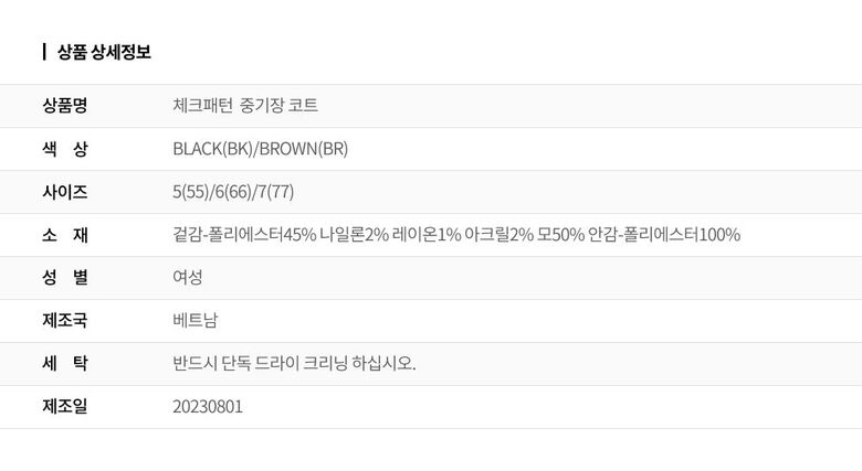 6. 세탁방법 및 취급시 주의사항 상세페이지 참조