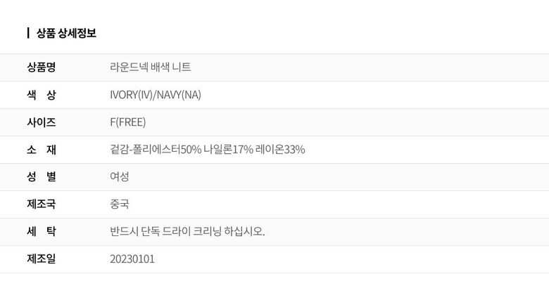 2. 색상 색상:IVORY(IV)/NAVY(NA)