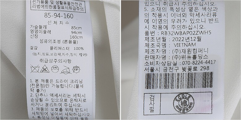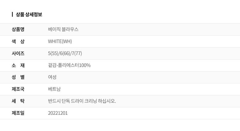 | 6. 세탁방법 및 취급시 주의사항 | 상세페이지 참조 |