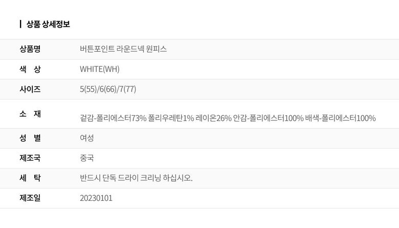 | 6. 세탁방법 및 취급시 주의사항 | 상세페이지 참조 |