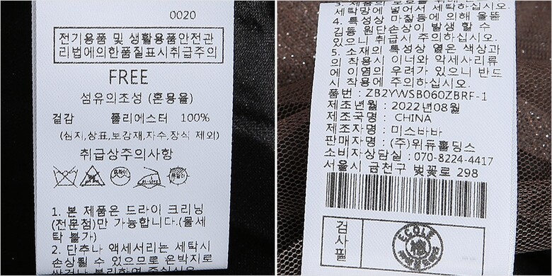 | 6. 세탁방법 및 취급시 주의사항 | 상세페이지 참조 |