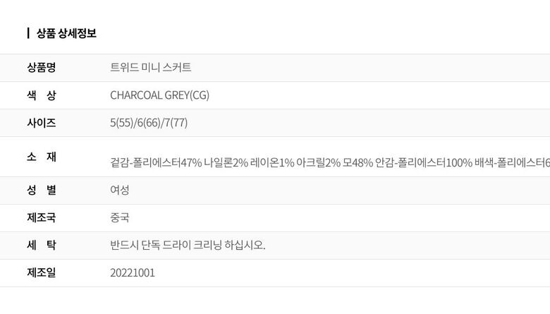 | 6. 세탁방법 및 취급시 주의사항 | 상세페이지 참조 |
