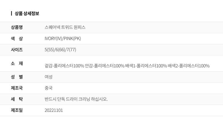 | 2. 색상 | 색상:IVORY(IV)/PINK(PK) |