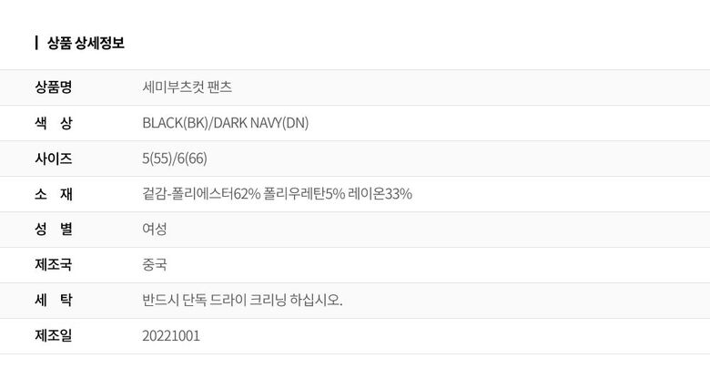 | 6. 세탁방법 및 취급시 주의사항 | 상세페이지 참조 |