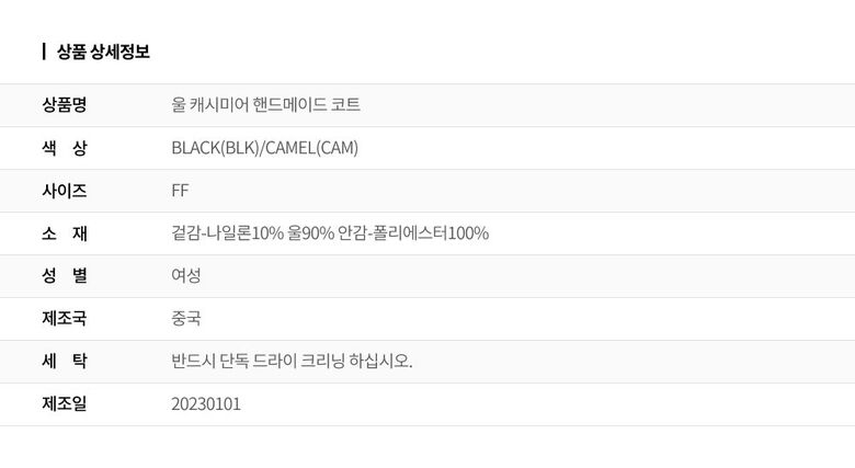 | 6. 세탁방법 및 취급시 주의사항 | 상세페이지 참조 |