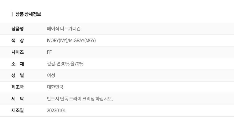 | 6. 세탁방법 및 취급시 주의사항 | 상세페이지 참조 |