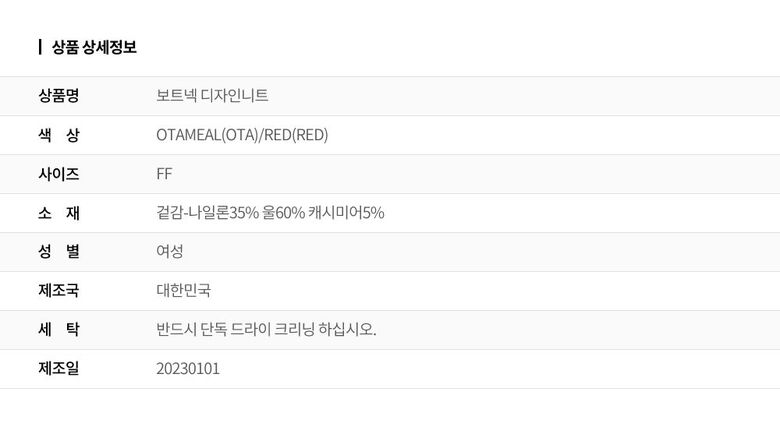 | 2. 색상 | 색상:OTAMEAL(OTA)/RED(RED) |