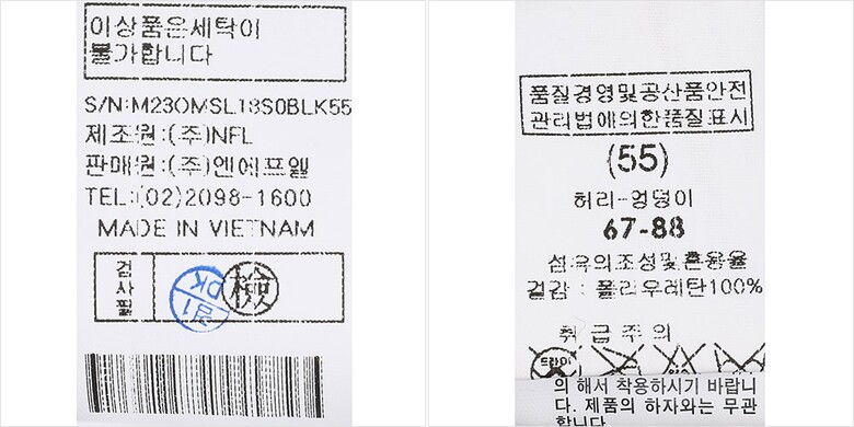 1. 제품 소재 (섬유의 조성 또는 혼용률을 백분율로 표시, 기능성인 경우 성적서 또는 허가서) | 겉감-폴리우레탄100% |