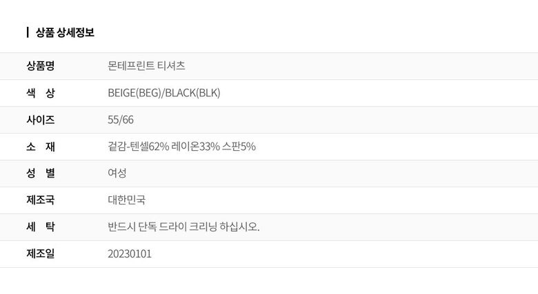 | 6. 세탁방법 및 취급시 주의사항 | 상세페이지 참조 |
