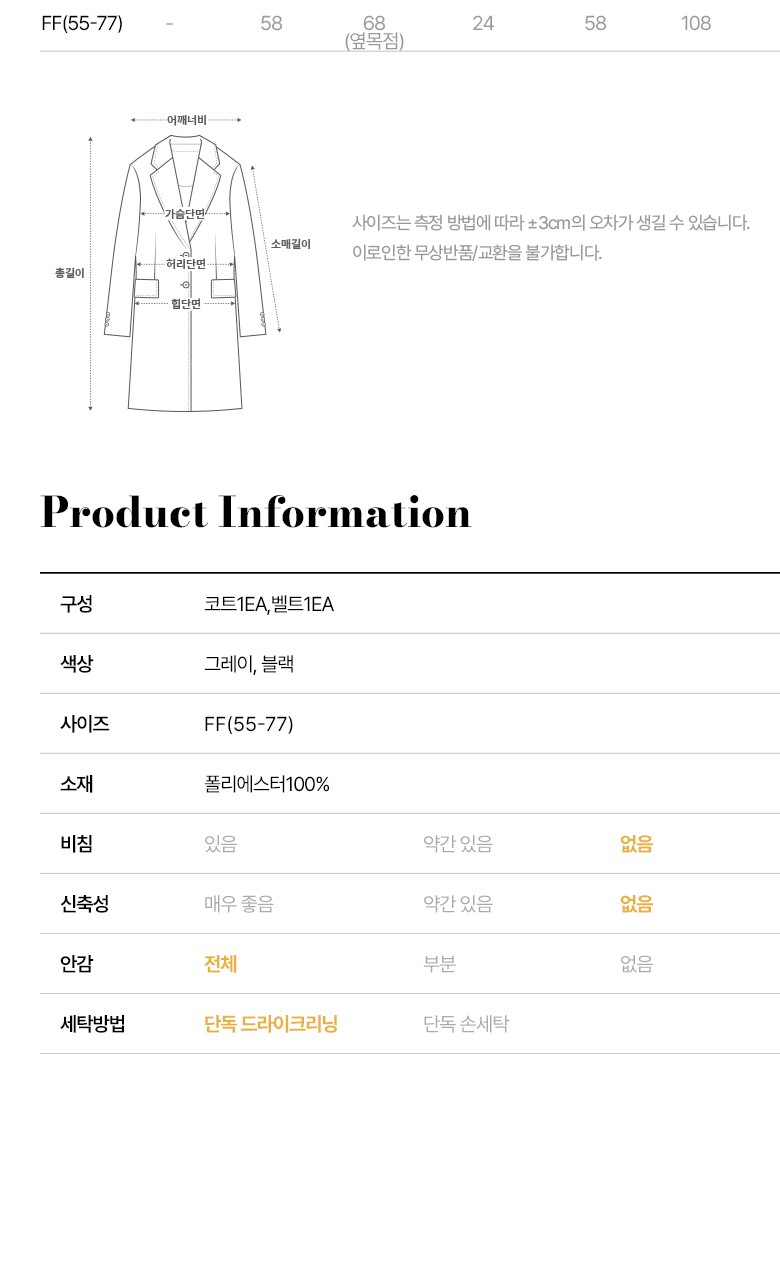 클라셰 (77까지)데일리코디롱코트+벨트SET_B5W0006