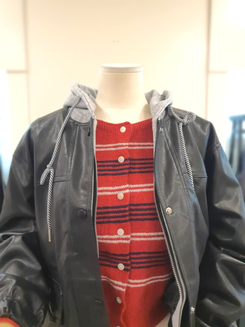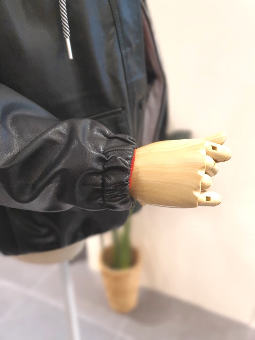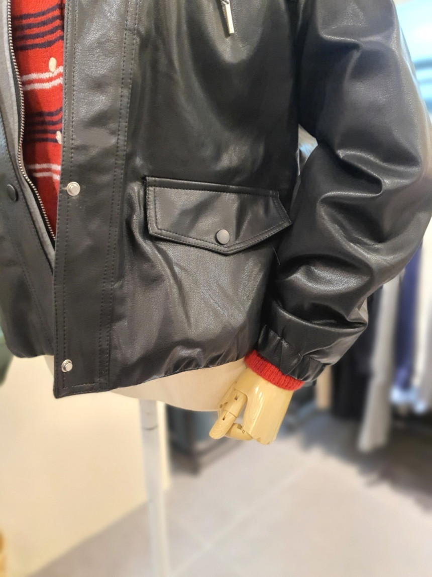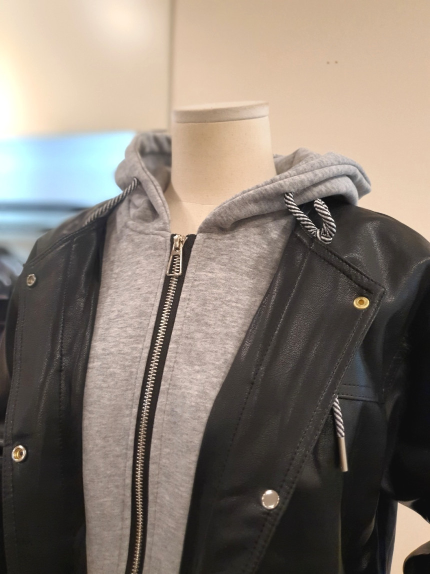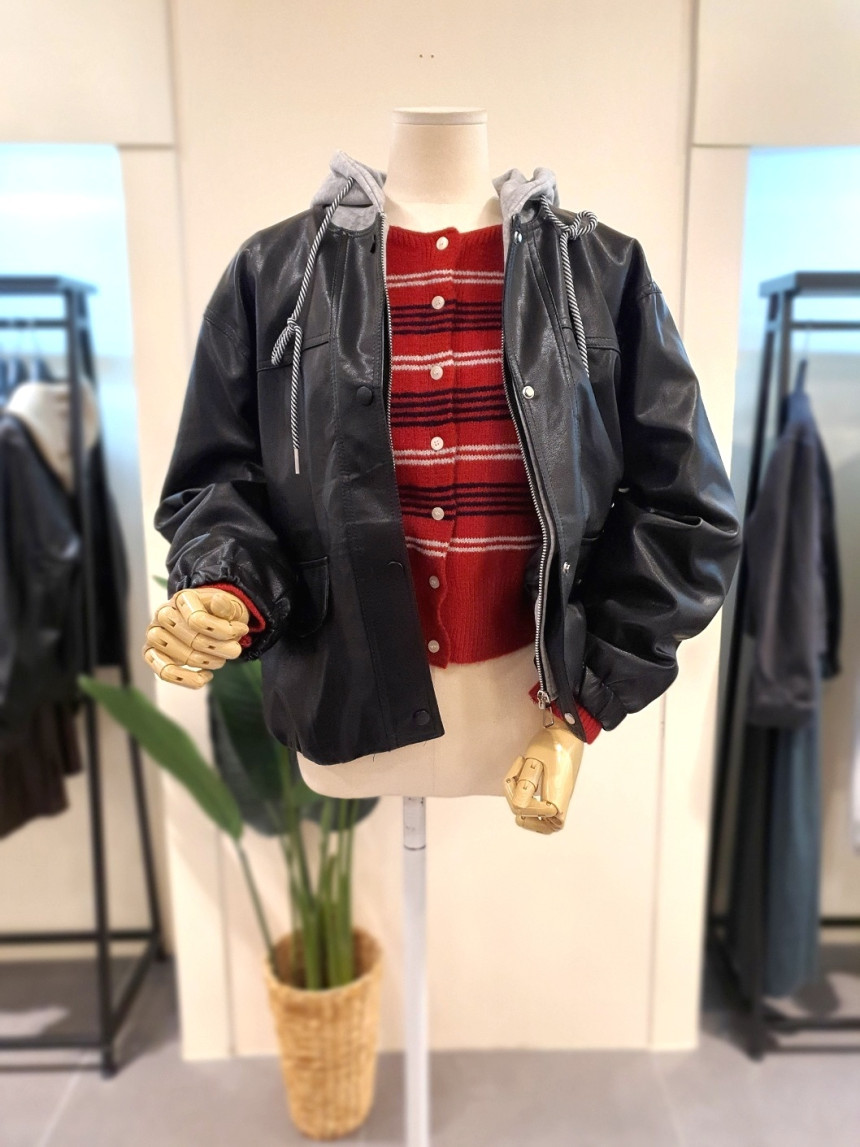 집업 후드 에코 가죽 점퍼입니다. 부드럽고 가벼운 무게감으로 부담없이 착용하기 좋습니다.