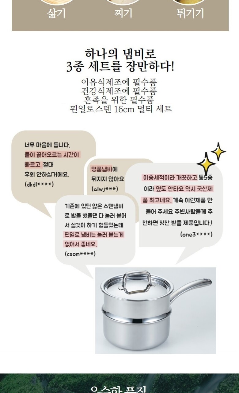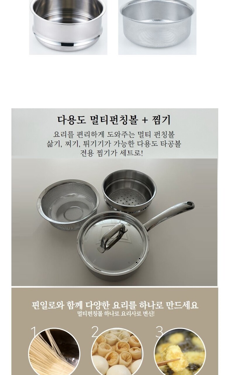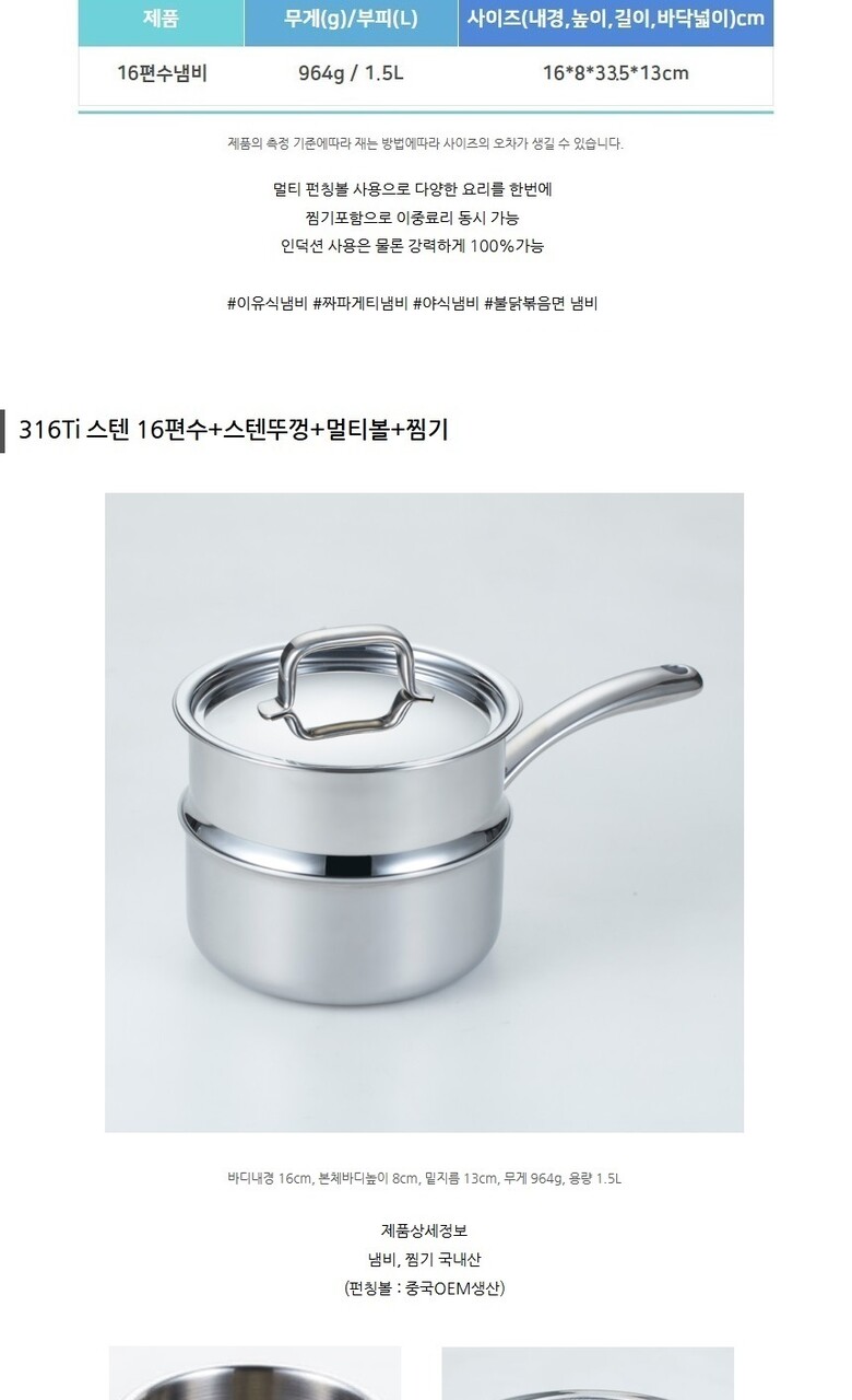 구성품 :16편수냄비+스텐뚜껑+펀칭볼+짐기
