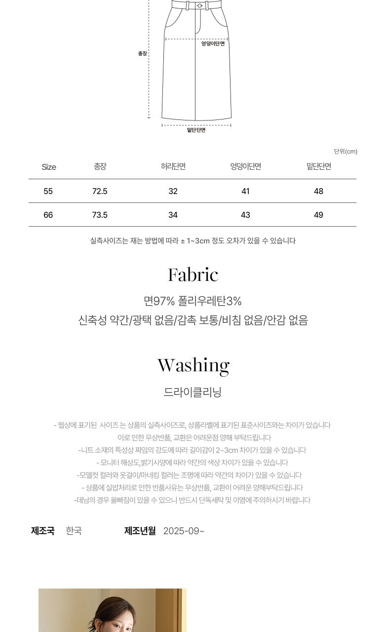 1. 제품 소재 (섬유의 조성 또는 혼용률을 백분율로 표시, 기능성인 경우 성적서 또는 허가서) 면97% 폴리우레탄3%
