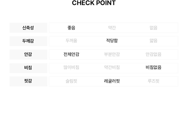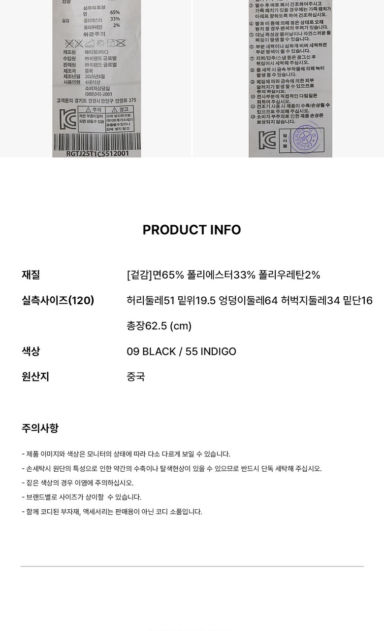 1. 제품 소재 (섬유의 조성 또는 혼용률을 백분율로 표시, 기능성인 경우 성적서 또는 허가서) | 상품상세참조 |