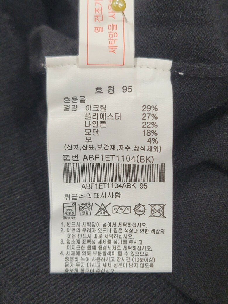 | 1. 제품 소재 (섬유의 조성 또는 혼용률을 백분율로 표시, 기능성인 경우 성적서 또는 허가서) | 겉감:아크릴 29%, 폴리에스테르 27%, 나일론 22%, 모달 18%, 모 4% |
