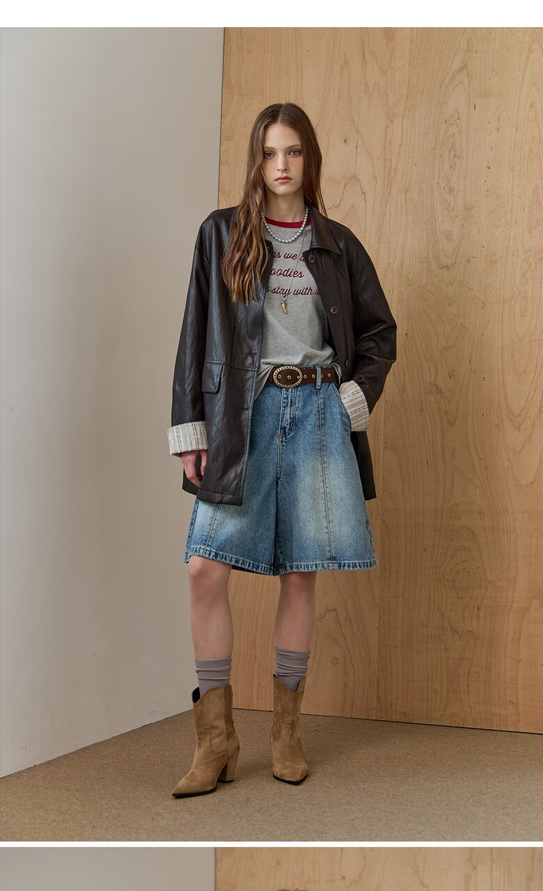 리얼 레더와 흡사한 질감의 부드러운 페이크 레더 소재로
