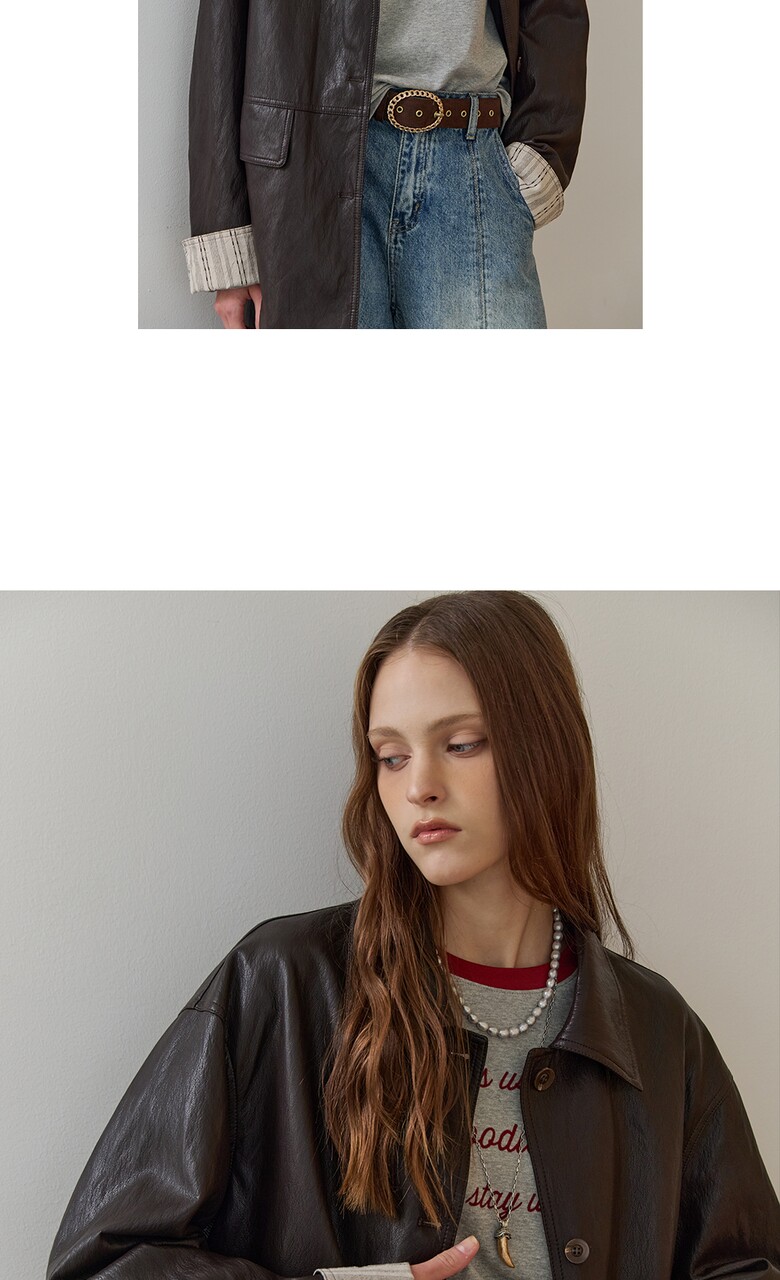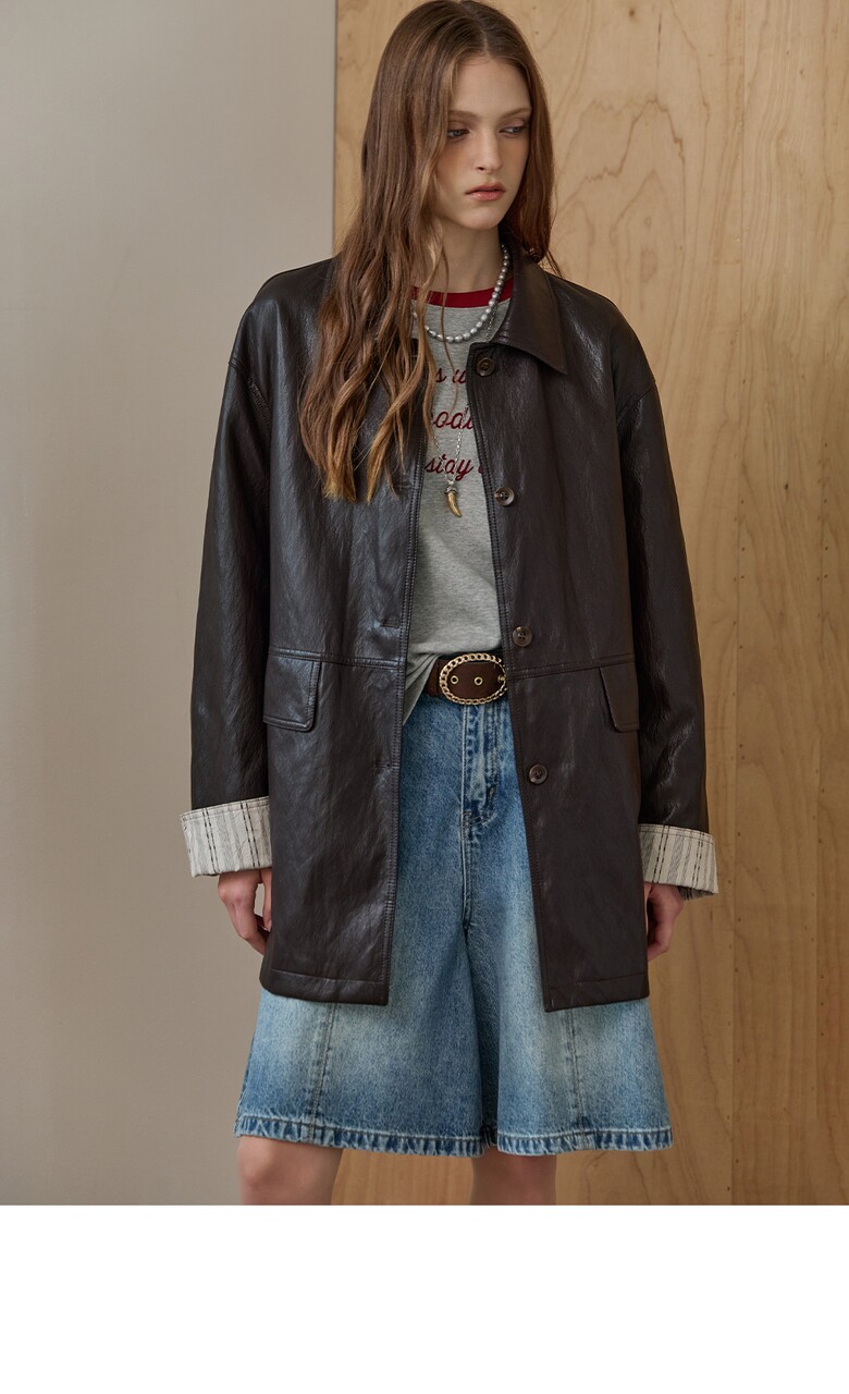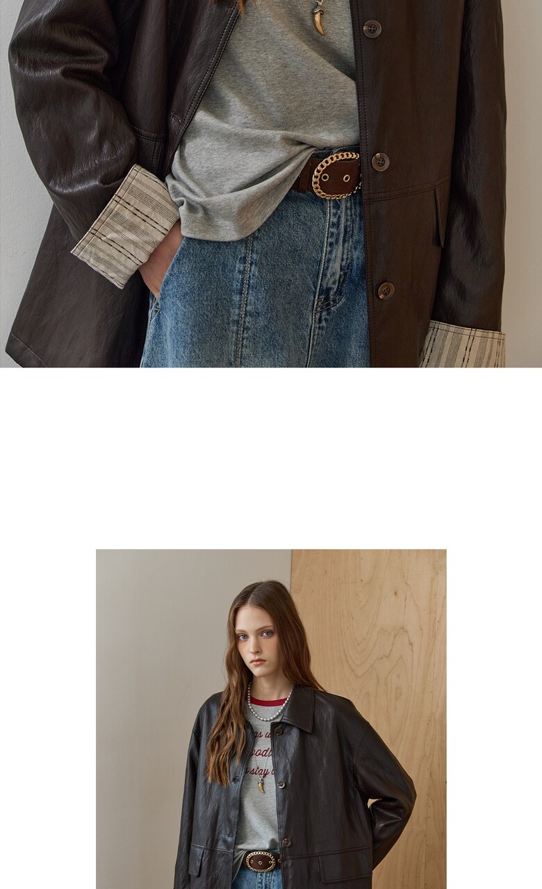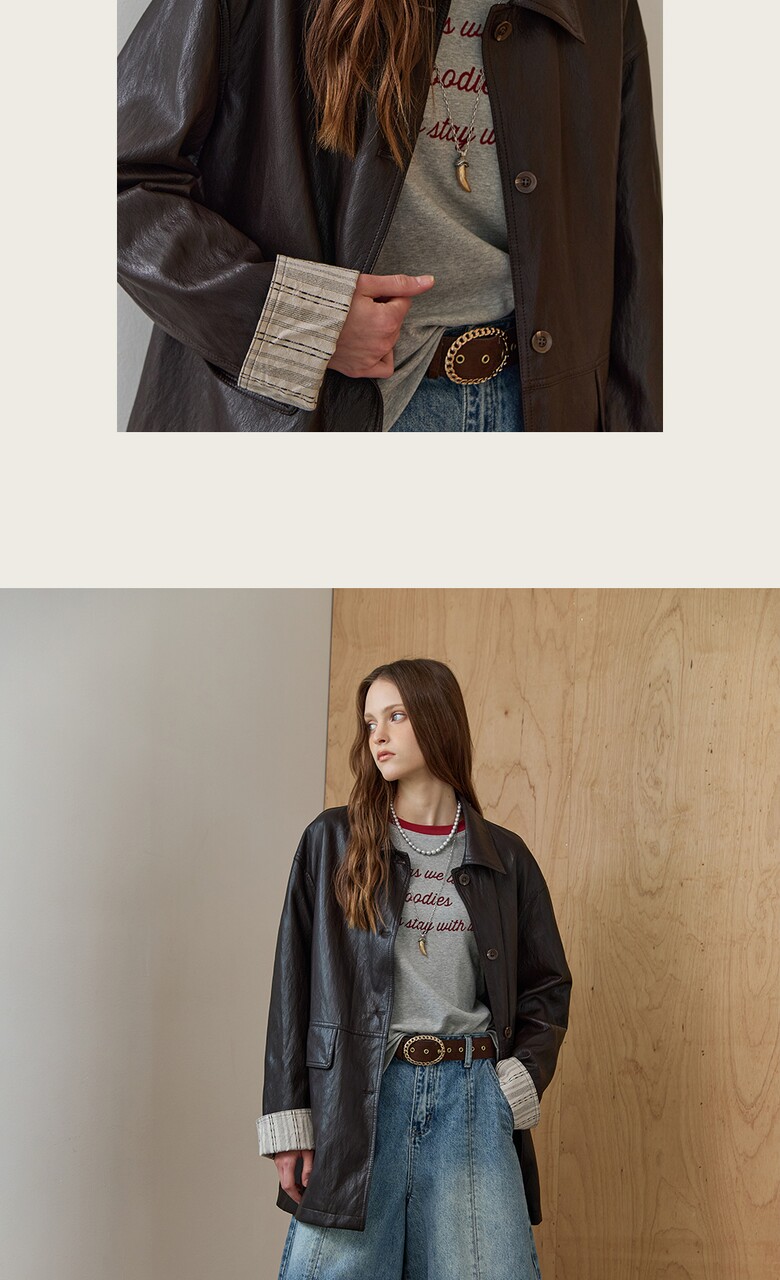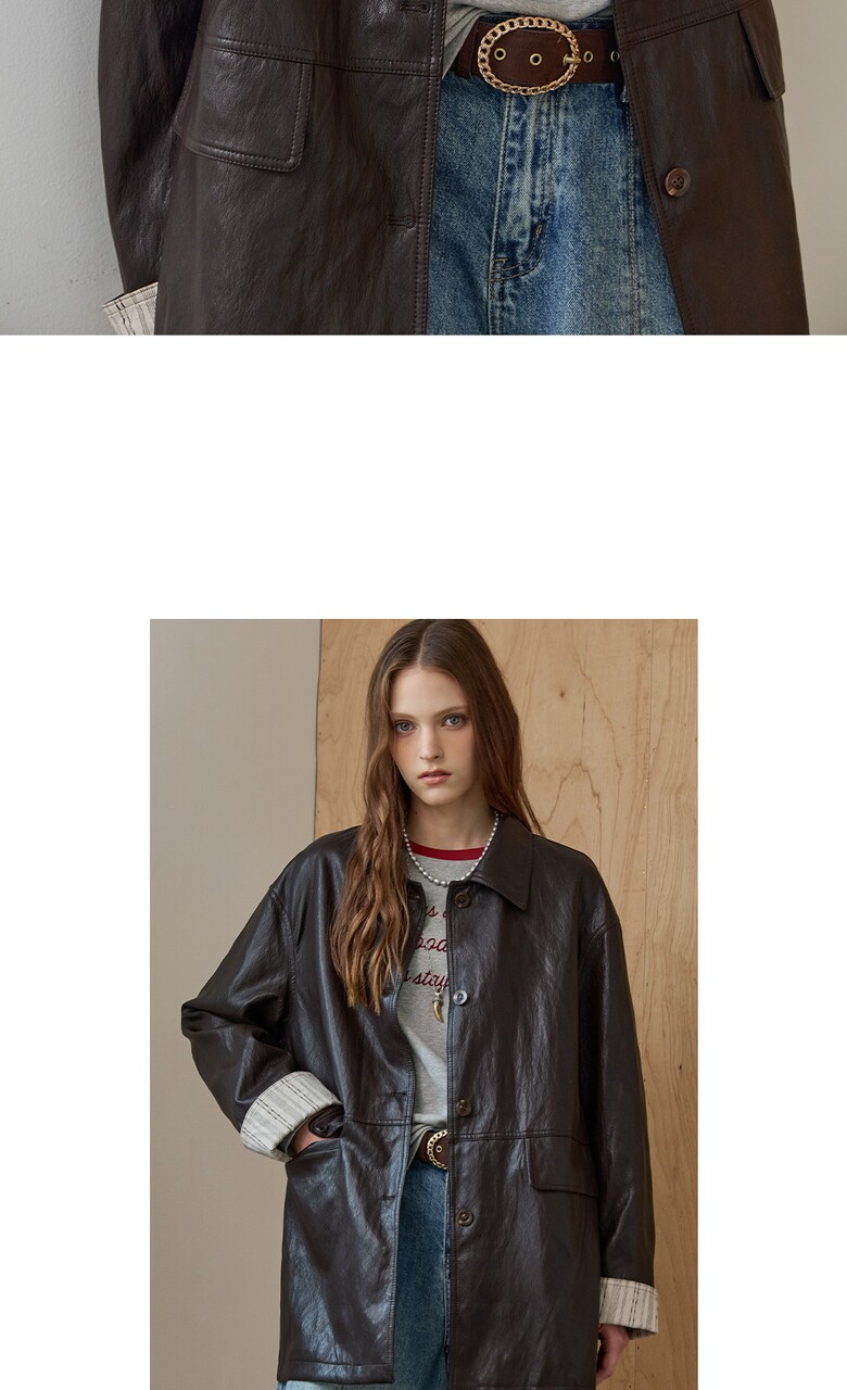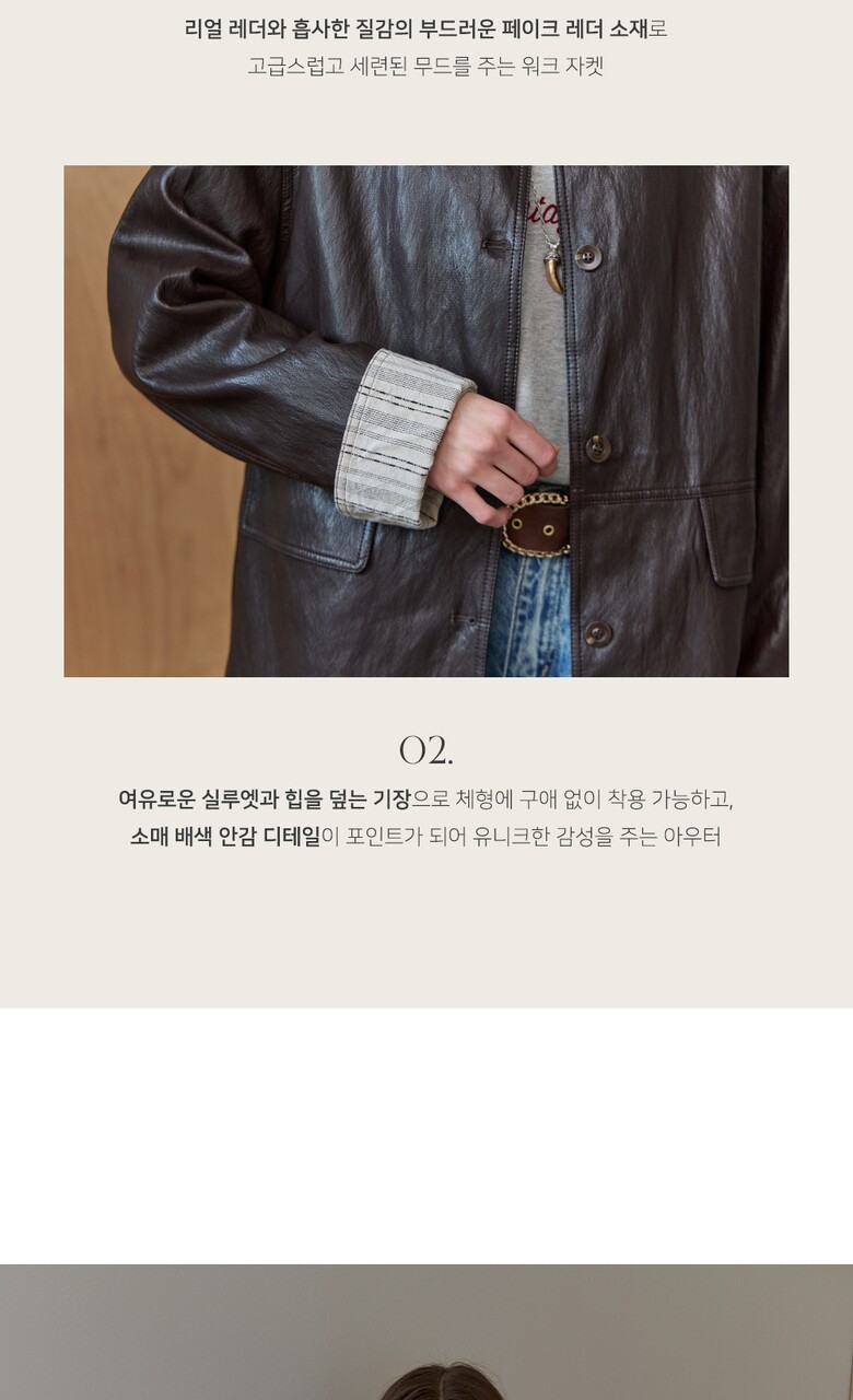 리얼 레더와 흡사한 질감의 부드러운 페이크 레더 소재로